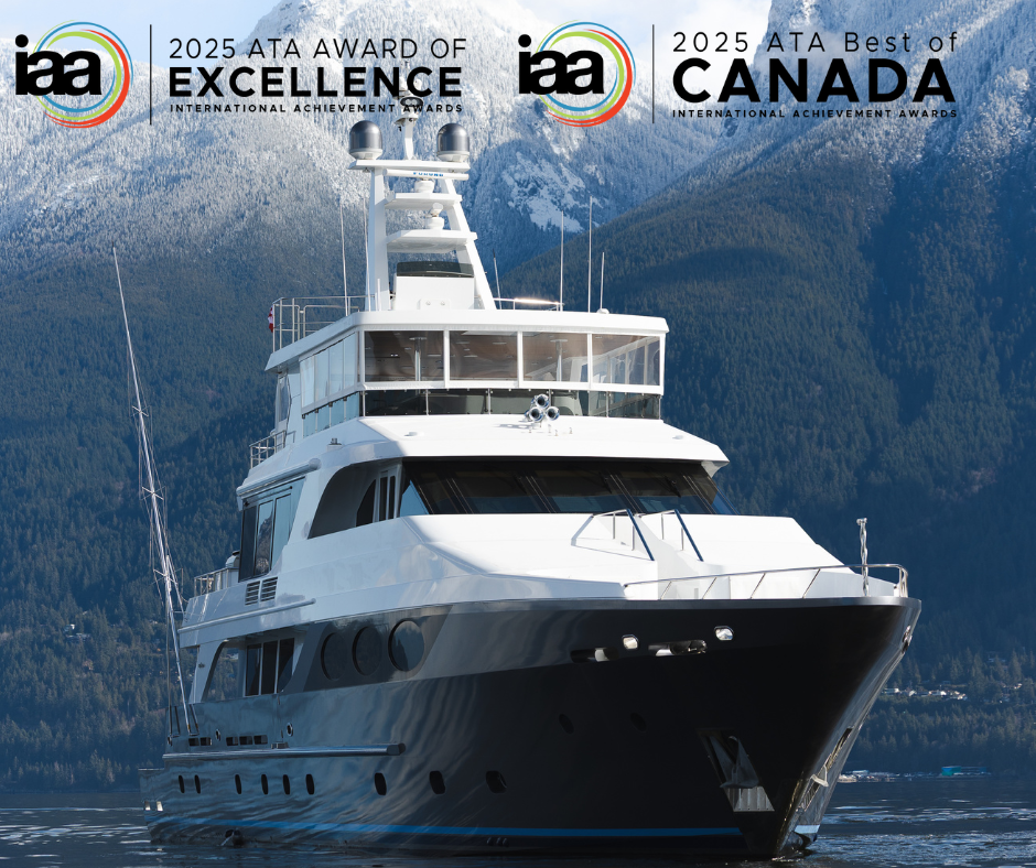 Honored to see our sundeck enclosure for Last Call recognized with the 2025 ATA International Achievement Award and ATA Best of Canada. This project transformed a complex vision into a seamless, multi-season reality for the 40.2-meter Intermarine 120 during its Vancouver refit.