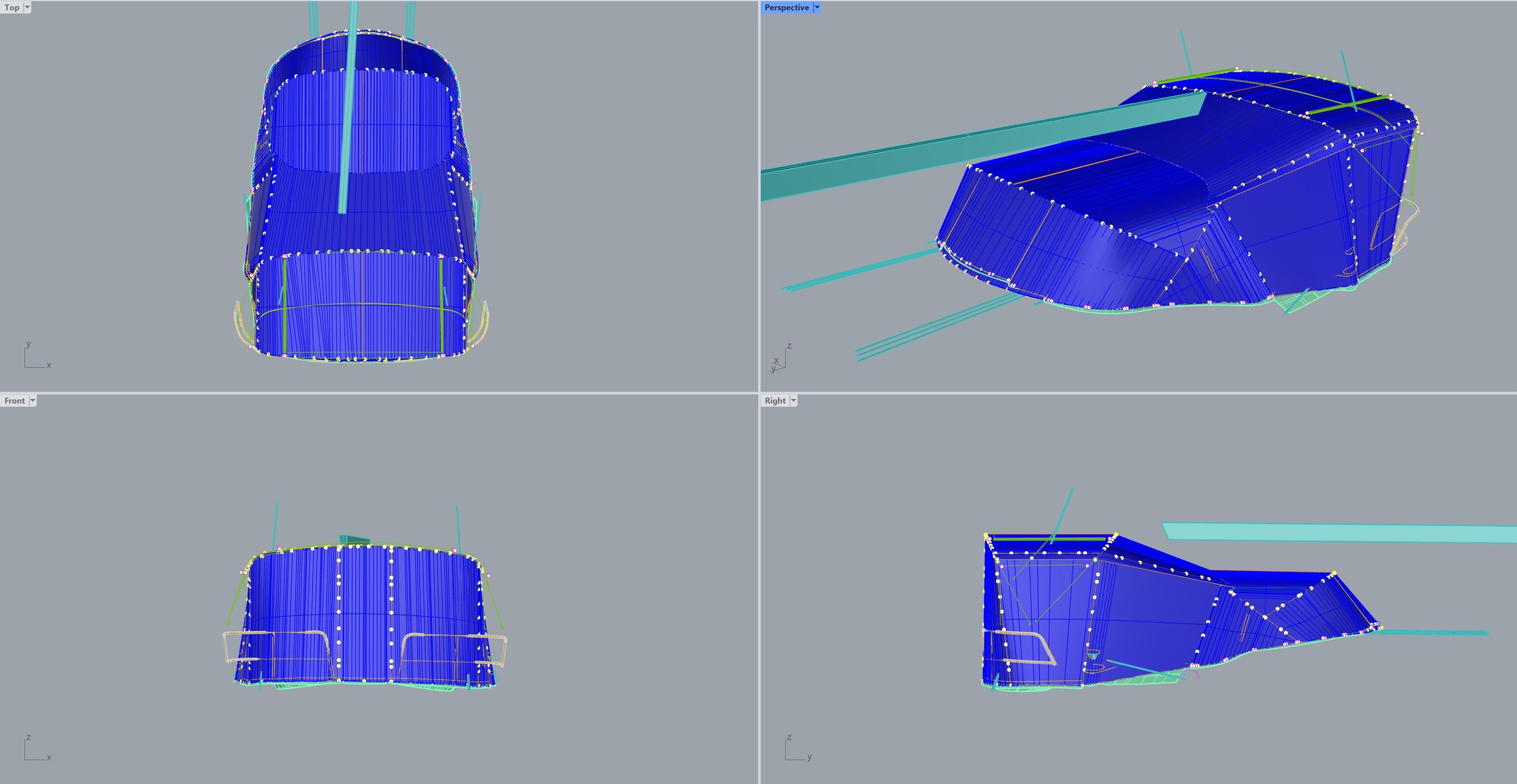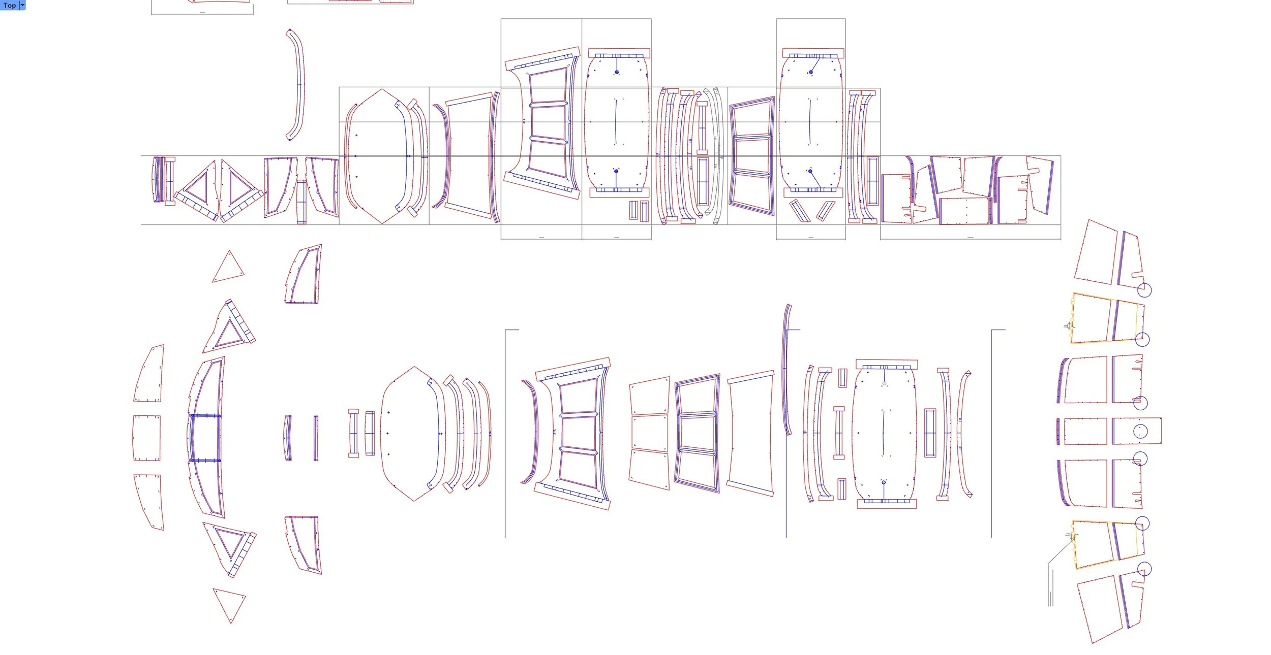 Captured geometry moves directly into CAD, where every frame and panel is designed digitally before a single piece of tube is bent or fabric cut. Frame geometry — tube lengths, bend angles, fitting positions are developed and validated in the model. Panel shapes are laid out against the frame geometry so fit is confirmed in the design, not discovered on the boat.